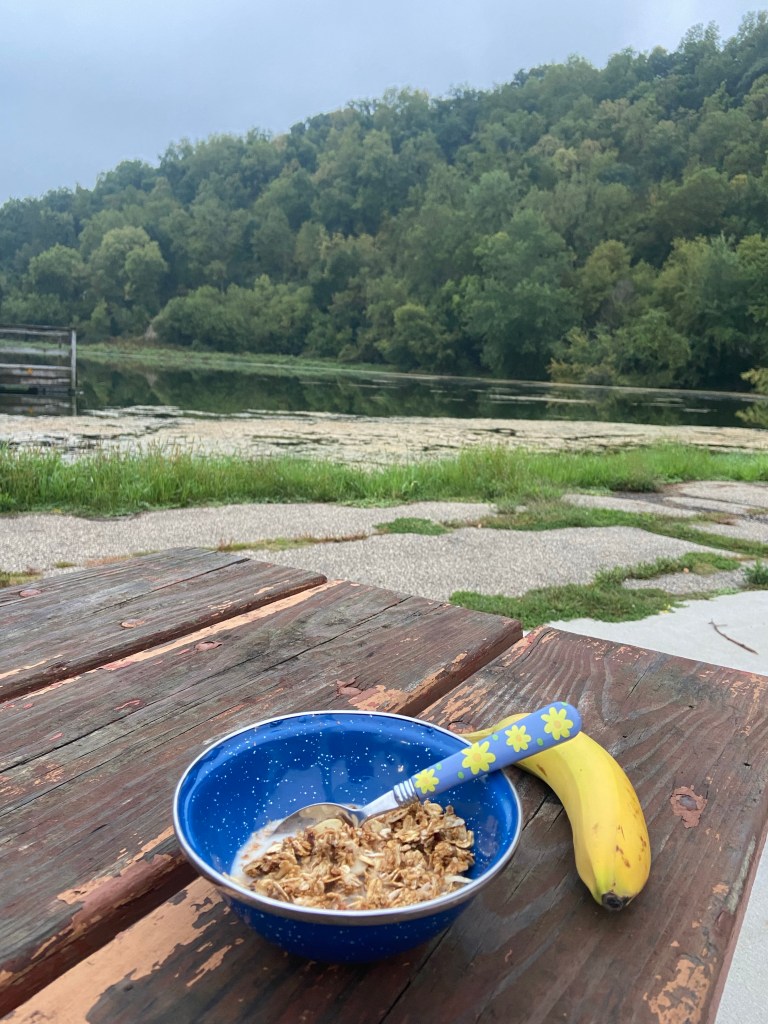 When we woke up, we discovered that the trailhead was a fabulous place to camp. We were on a pretty little pond with picnic tables beside the pond. There was a clean port-a potty. 😊