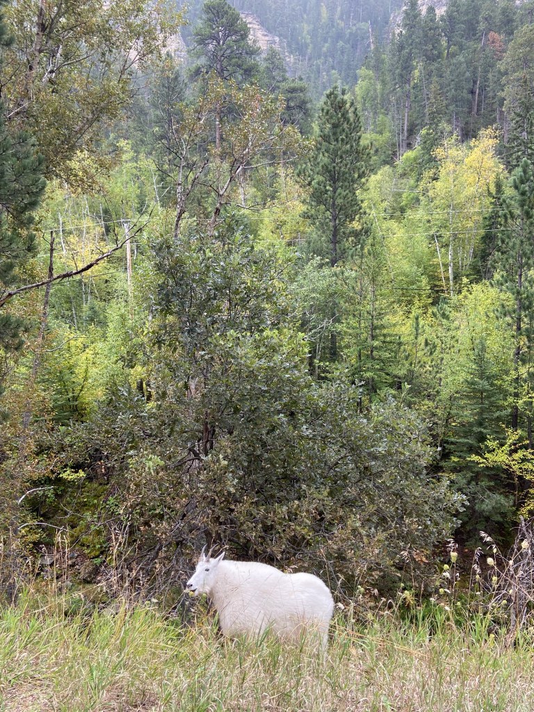 We drove The Spearfish Canyon Scenic Byway as we traveled to South Dakota. The scenery was lush and densely forested, with the gorgeous Rubicon Gulch running along the roadside, punctuated by waterfalls from time to time. We pulled over and ate lunch looking at Bridal Veil Falls.