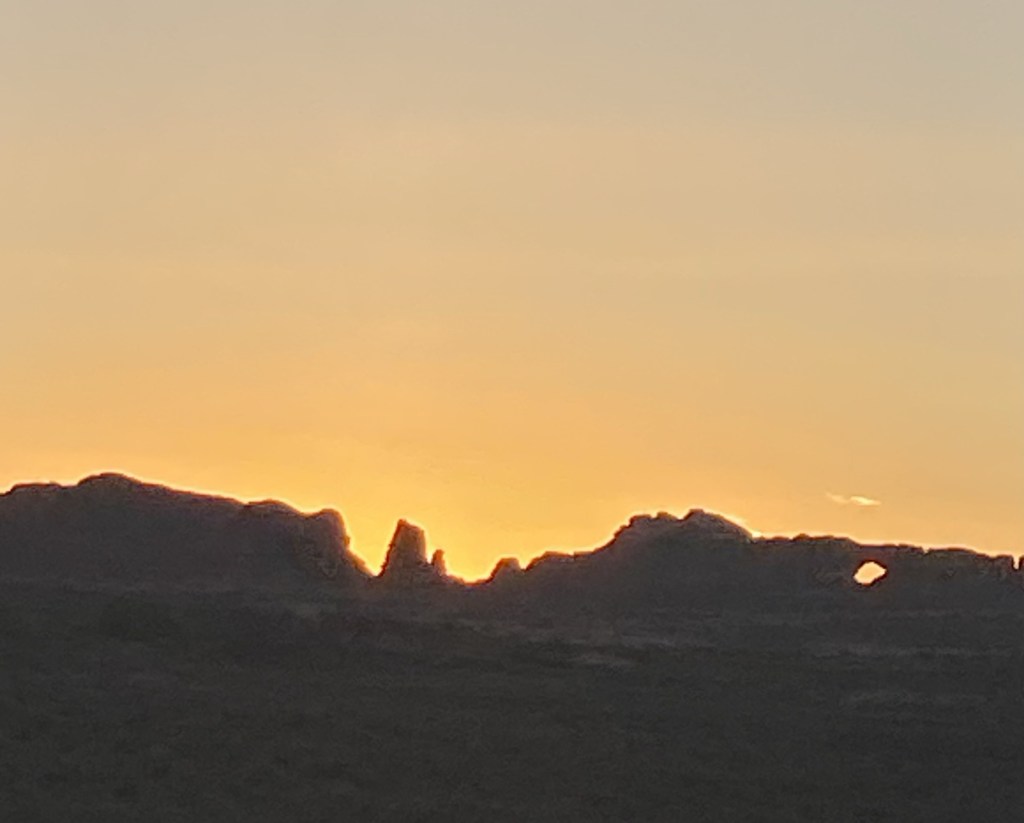 About 6 PM we drove back into the park and went to the Window Arches parking lot to see sunset and moonrise. It’s a full moon tonight. I wanted to see if I could get a shot of the full moon through the North Window Arch. Unfortunately, my i-phone wasn’t good enough to capture the shot. But watching the moon rise over the landscape was still amazing! There were a lot of people there.