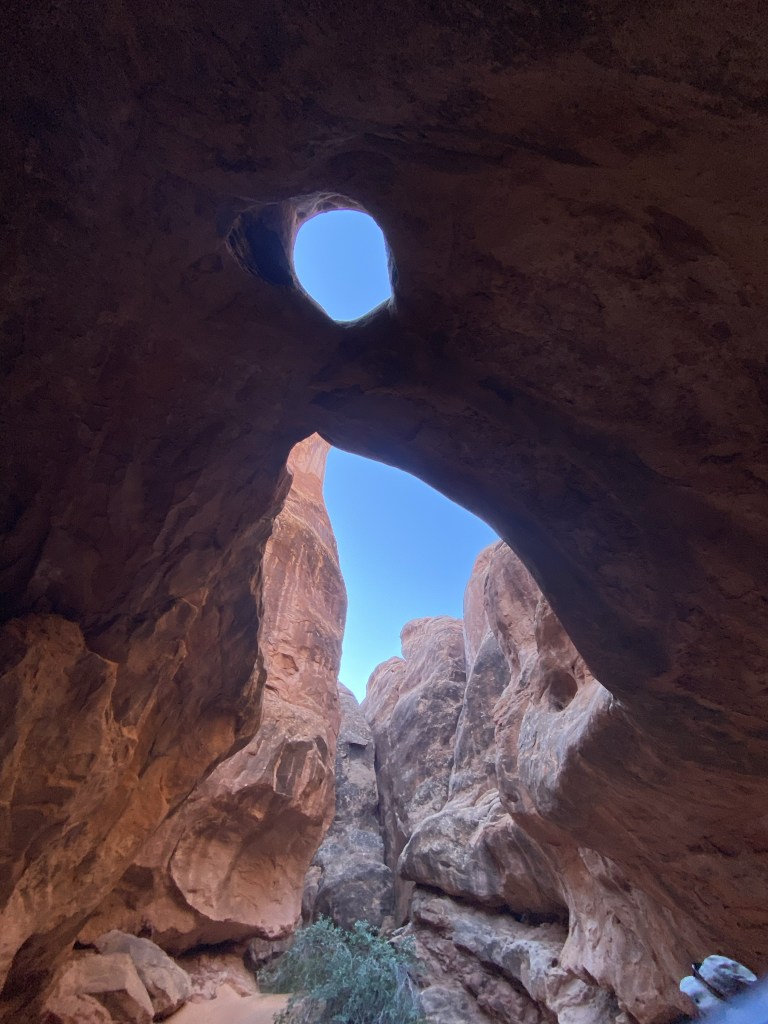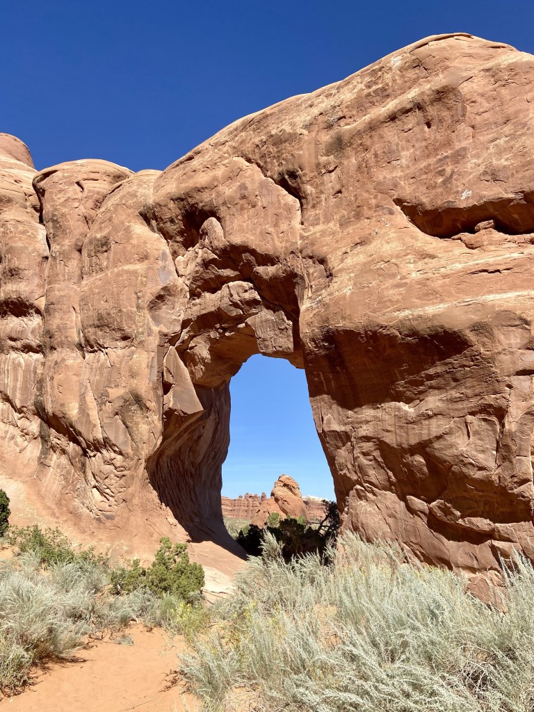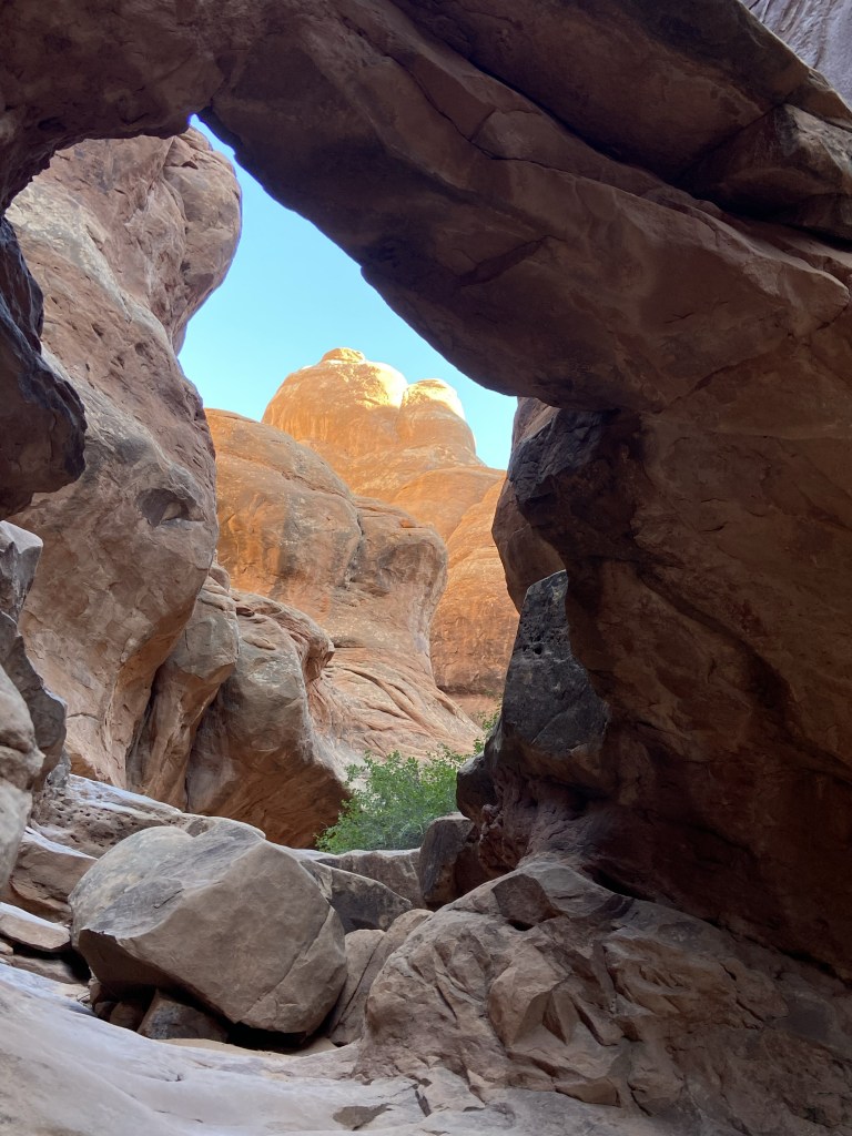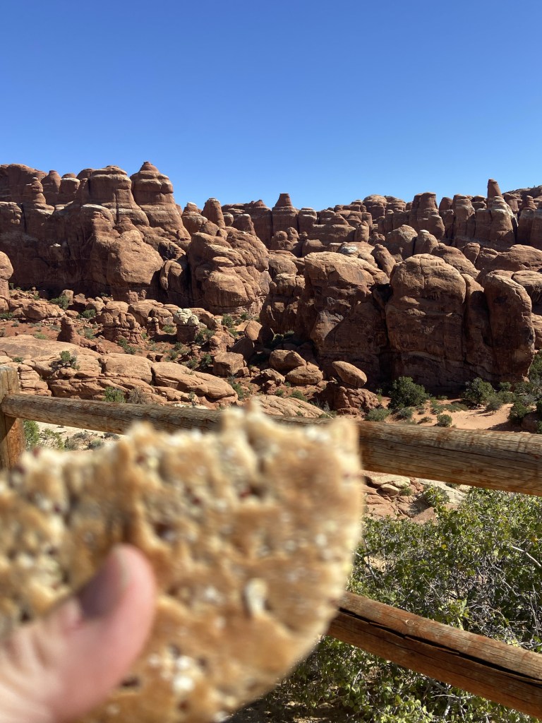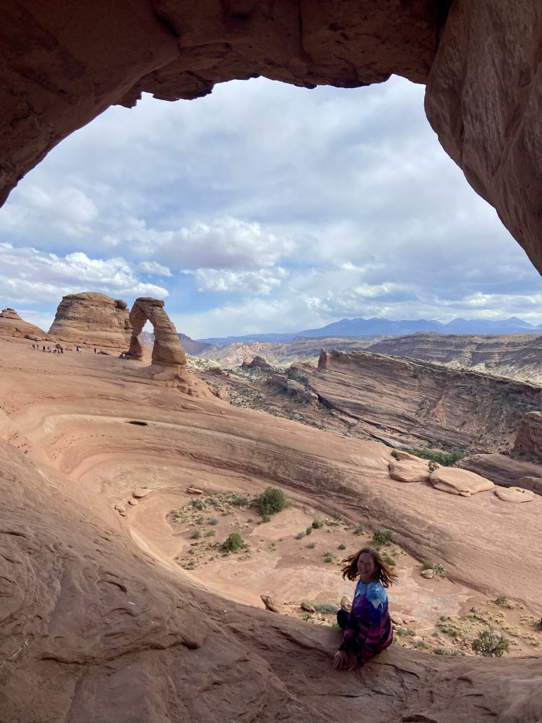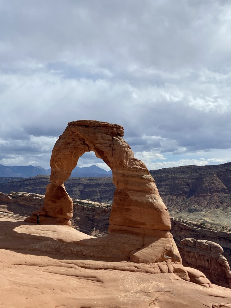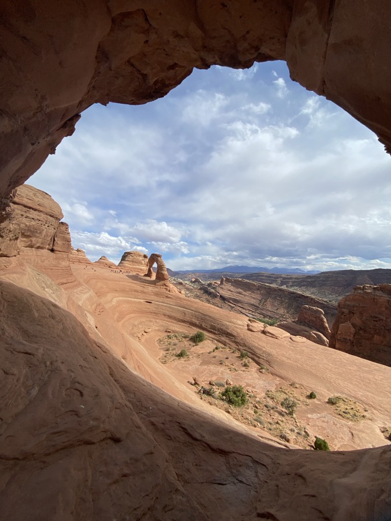 The line to take your picture at the base of the arch wasn’t too long. But, I think the coolest shot is from above. As you approach the arch, on the right, there is a ledge with an arch. You have to climb a little to get up there, but the pictures of Delicate Arch through another arch turned out really cool!