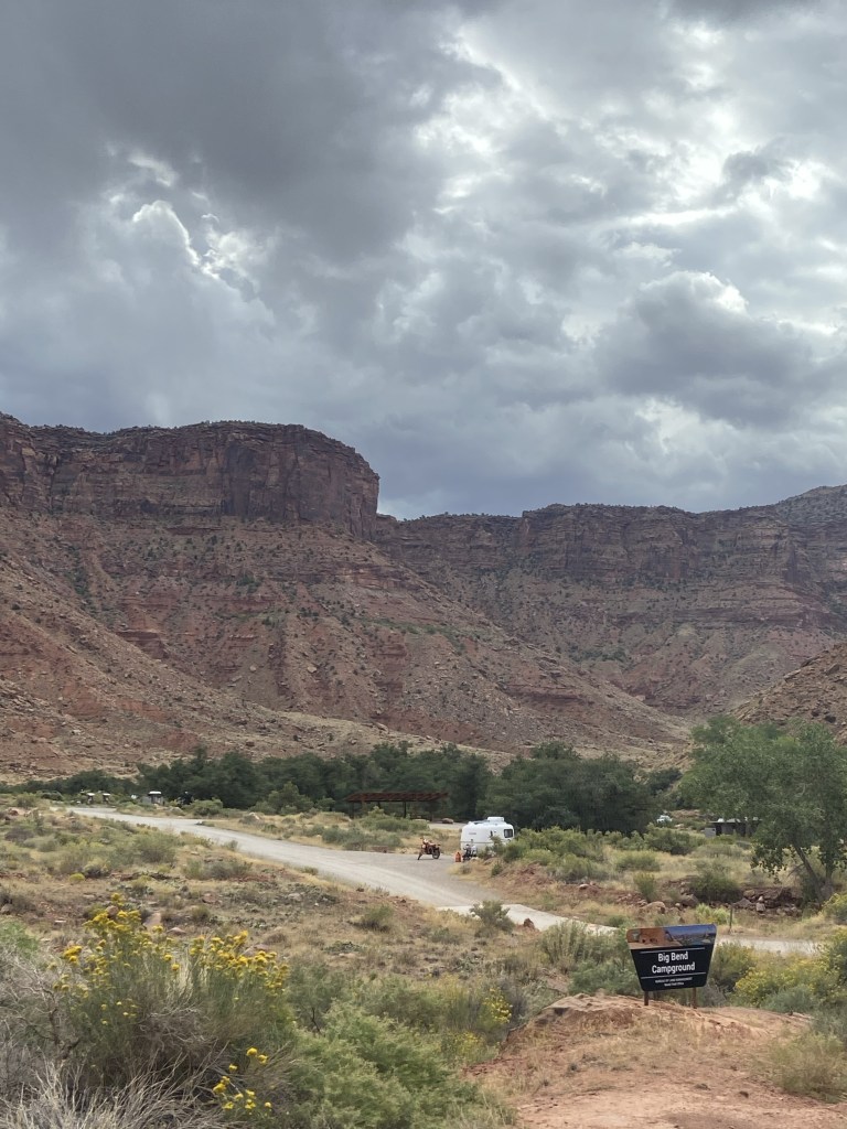 This morning we had an entry pass for 11 AM. We were a bit early so we drove down Hwy 128 along the Colorado River bordering Arches. It was a gorgeous drive. If we ever come back, we will definitely camp along there. There were 6 or 7 BLM campgrounds. They are all first come, first served. You can’t reserve them in advance.