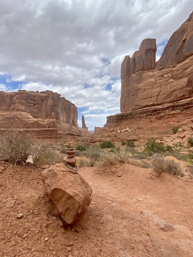 We entered the park about 11:30 and immediately went and did the 2 mile round trip Park Avenue Hike. It was a fairly flat hike in a wash through gorgeous monuments. I highly recommend it!