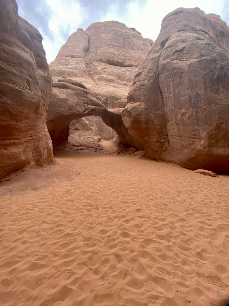 Next we did the Sand Dune Arch, and we could see Broken Arch in the distance. Then we did Skyline Arch hike.