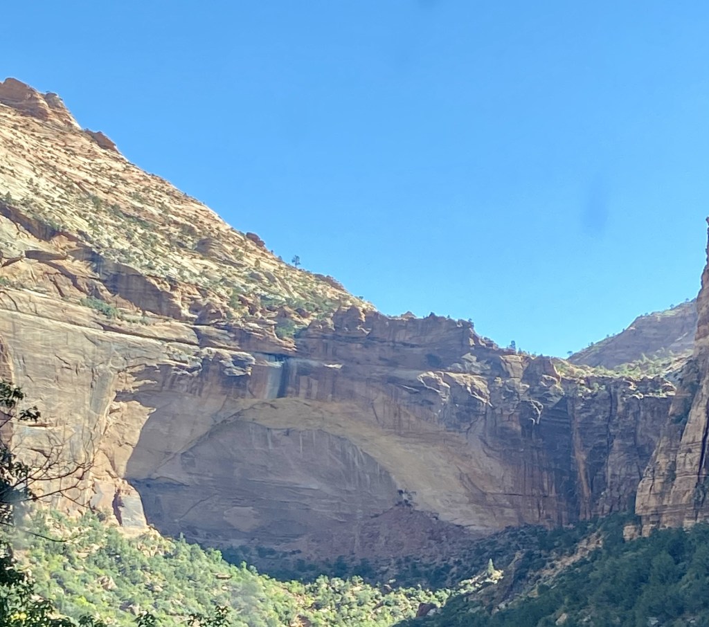 We arrived Monday late afternoon. We couldn’t get a reservation for in the park, so we made an RV park reservation on the east side. To get there, we drove the incredible winding Hwy 9 drive through the park and took our picture with the Zion sign. There is a 1 mile tunnel through a mountain. The Hwy 9 drive is breathtaking! No way my camera does it justice!