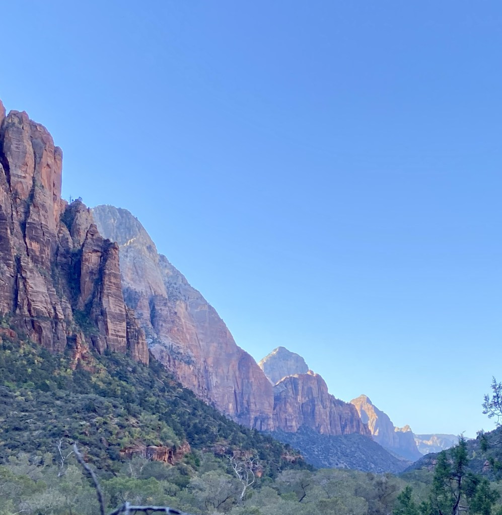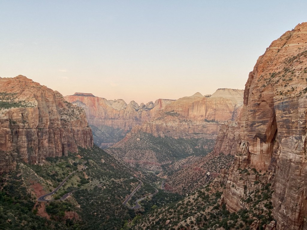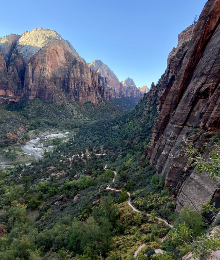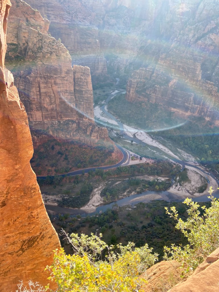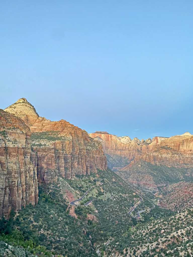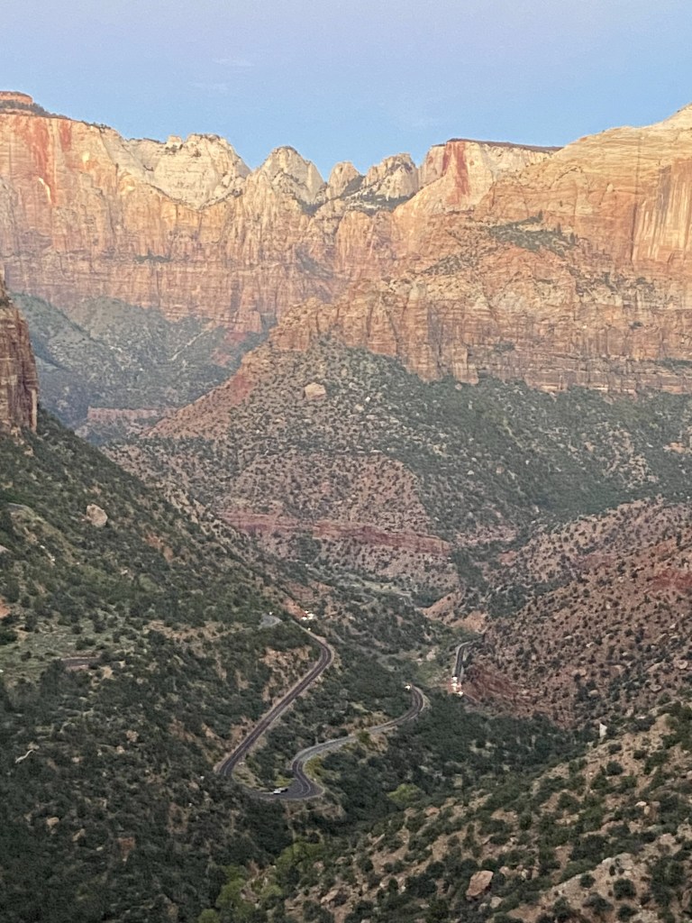 We had breakfast and got ready in the parking lot. This morning we hiked the The Scout Lookout via West Rim trail that leads to Angel’s Landing. We had no idea that the path is paved most of the way, although it is quite steep. We enjoyed the hike to Scout’s Lookout. Amazing scenery! So many people were excited about continuing on to Angel’s Landing. We will have to come back to do that one.