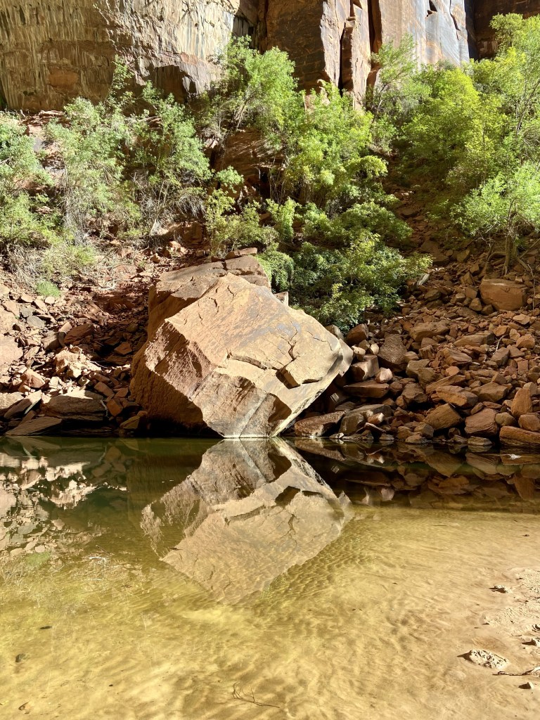 We boarded the shuttle and got off at The Grotto stop, stop #6. We were doing the lower, middle and upper Emerald Pools trails – approx 7 miles round trip. We were only steps into the hike when we saw a tarantula! Then another, and another! We saw for our five right along the trail. This was a good starter hike here. They all were moderate level.