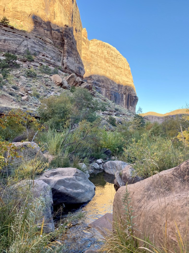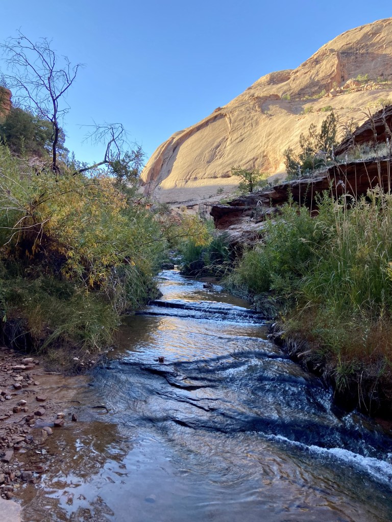 I immediately fell in love with the trail. We were criss crossing this beautiful little river with gorgeous bluffs on both sides. The sky in Utah is the most  incredible blue. If I ever get to name a Crayola crayon, it’s going to be that gorgeous Utah Blue!