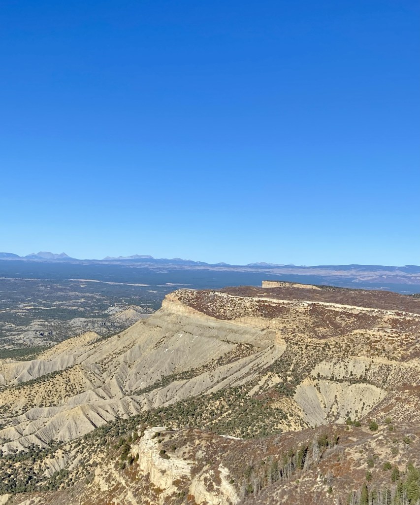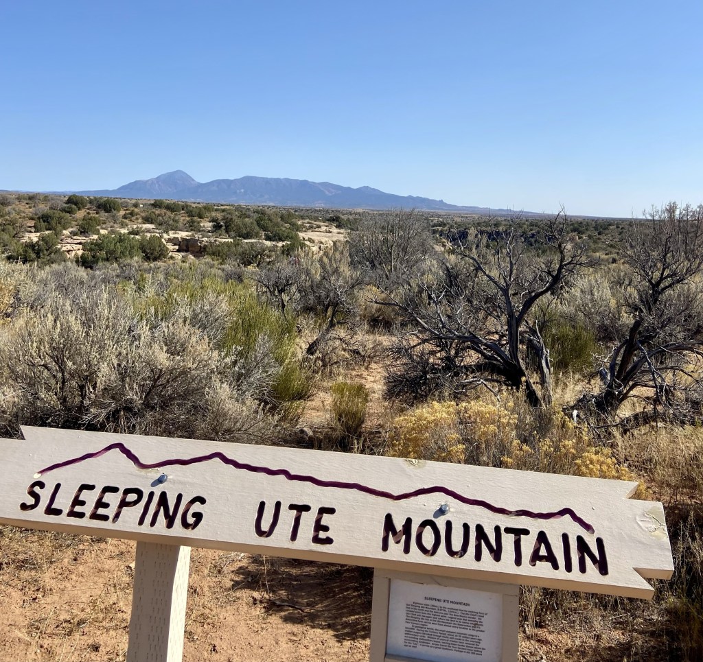 You can access the Rim Trail from the campground. We walked about 2 miles around the rim of a canyon and were able to view about 10 buildings up close. There was a wide variety of shapes and sizes. One of the buildings was roped off as there were park service employees actively preserving part of the building from collapsing. In the distance there is a mesa. It is called Sleeping Ute Mesa. Legend has it that the mesa is a sleeping Ute chief who will come back one day to lead his people. The chief’s head is on the left and his feet on the right.