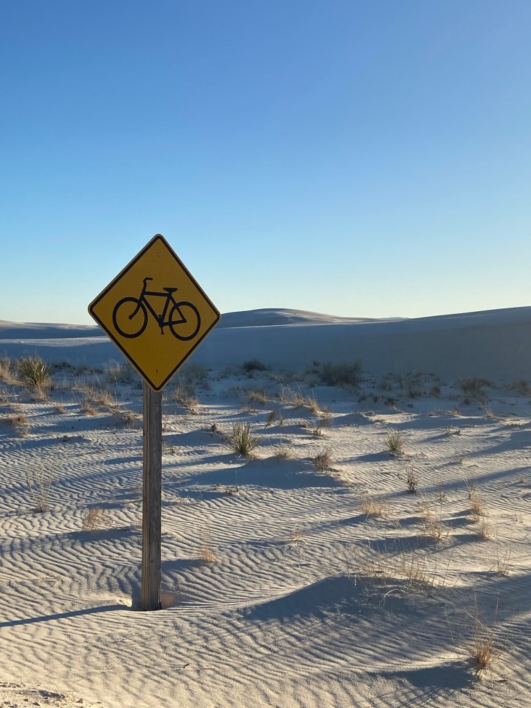 3. Wow! Totally amazing. I had no idea roads of sand existed. So cool. Love the bike sign!