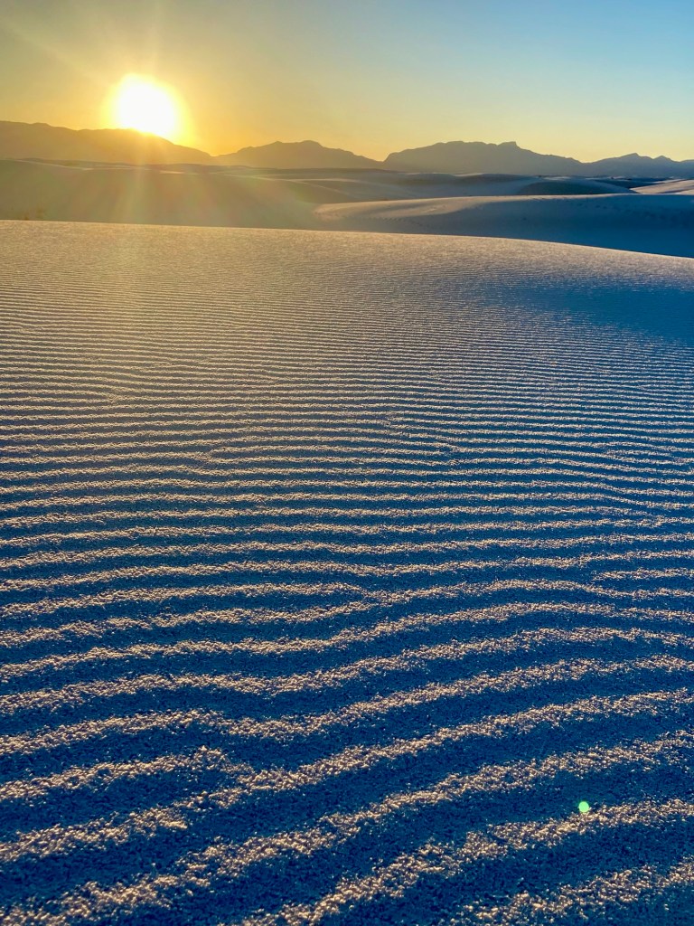 We left Guadalupe Mountains in the early morning, were astounded by the natural entrance and Big Room at Carlsbad Caverns and spent sunset at White Sands National Park!