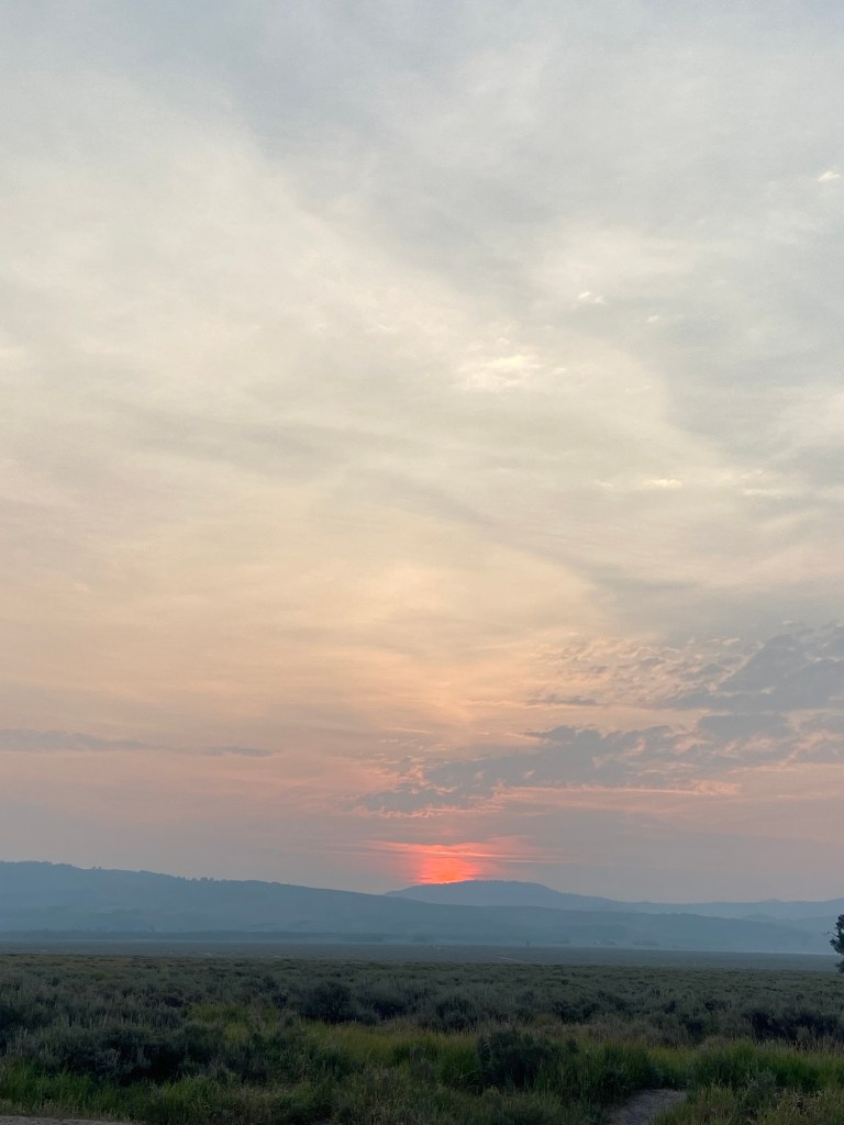 We drove out to Gros Ventre campground. Its on the edge of the park close to the Gros Ventre River and some beautiful fields of sage brush. After dinner we went on a short drive in search of moose, which we have yet to see. We didn’t see any moose, but we did see a beaver crawl out of the river. And we experienced a wonderful sunset.