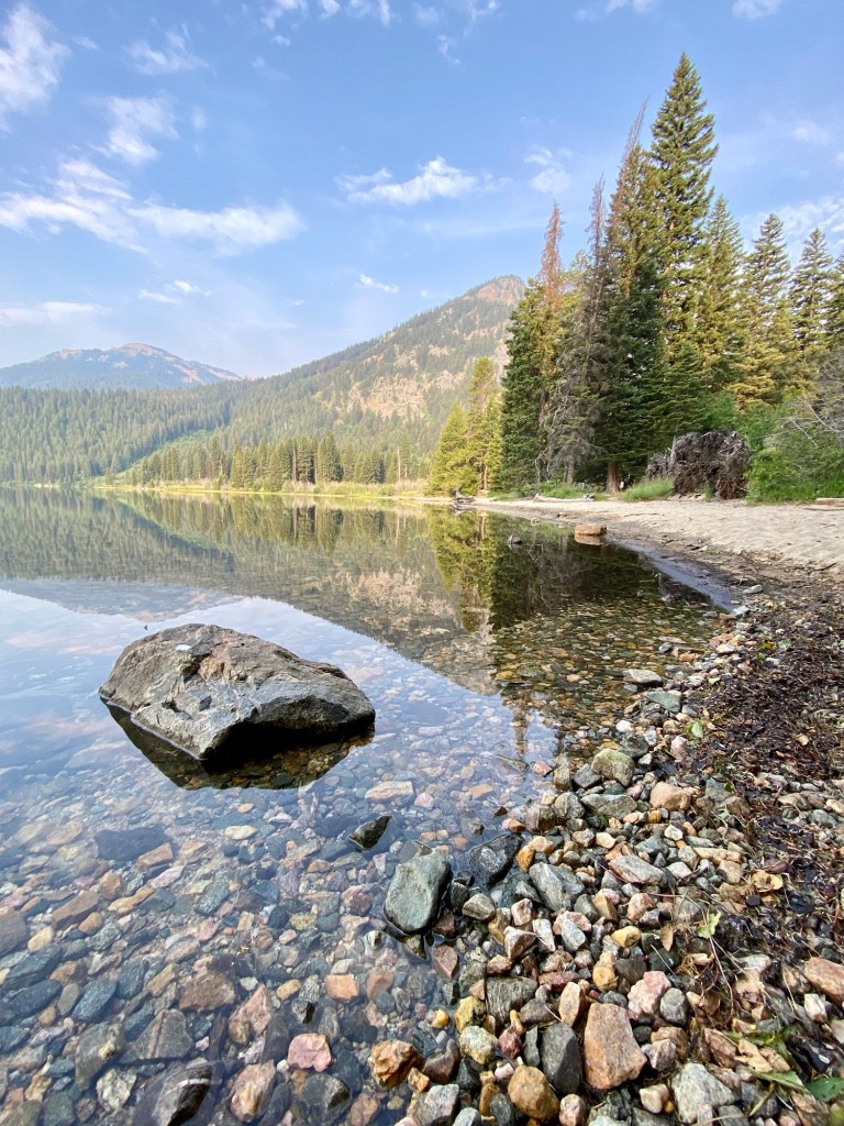 We decided to do the Phelps Lake Trail Loop, a 7.1 mile moderate loop with 600 feet of elevation gain. It was a simply gorgeous hike. The first half of the hike we saw 2 people going in the opposite direction from us. One of them was a trail runner who told us he had seen a bear on the other side of the lake.