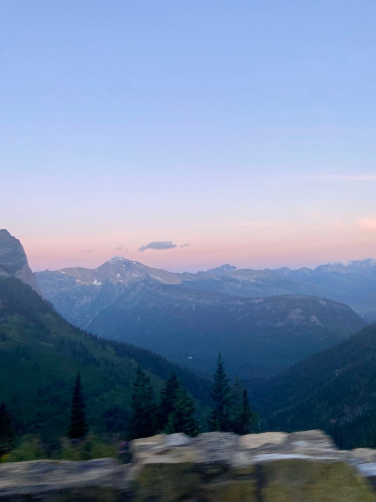 We left Moscow, ID and traveled north along the west side of Idaho up into the pan handle. We stopped in Coeur d’Alene at Independence Park on Northwest Lake and ate lunch on a park bench. We traveled across the pan handle and into Montana. The landscape changed dramatically, from wheat fields to thick forest. Along the highway there were billboards advertising The World’s Best Huckleberry Shakes at a gas station just before you enter Glacier. We wanted to fill up before entering Glacier anyway, so we got gas and a huckleberry shake. It WAS EXCELLENT!