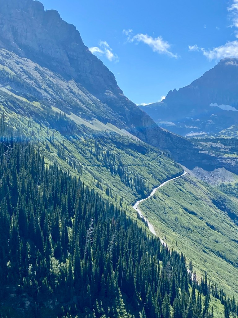 If you’re not familiar with GTTSR, it is a 50 mile two lane road through Glacier National Park that crosses the Continental Divide at Logan’s Pass. Along the drive you see impressive glaciers, beautiful valleys, cascading waterfalls, and bright wildflowers. The views are literally breathtaking!