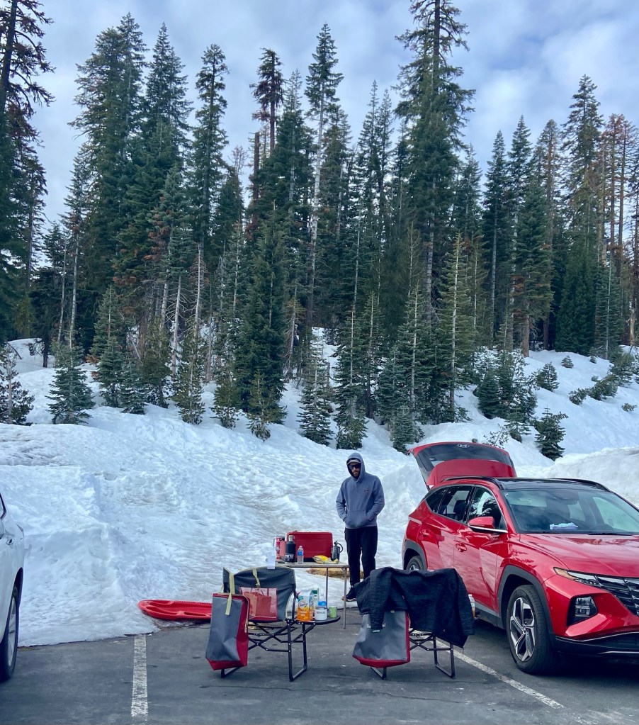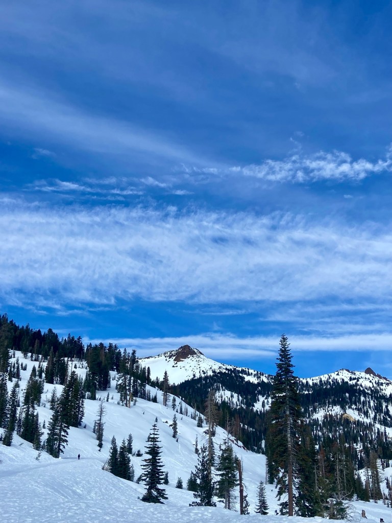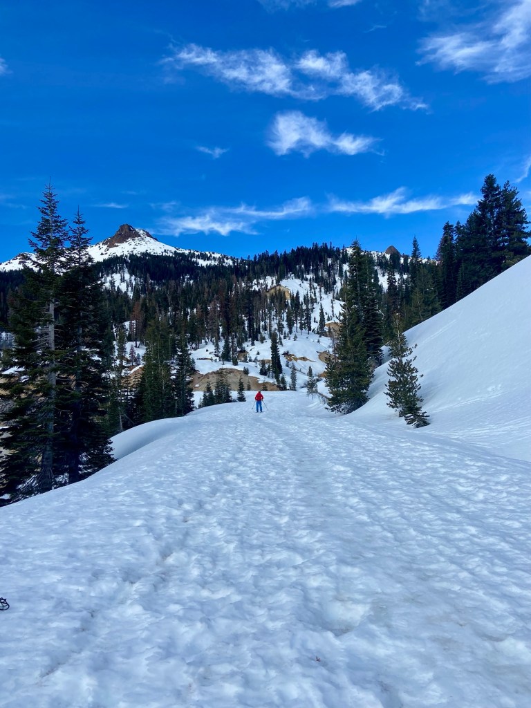 We met interesting people on the trail. We met two men from France who had a 3 week old baby with them. They flew to CA to adopt the newborn and were seeing the park while waiting for the baby’s passport. Next we met Jonas from Berlin, Germany who was car camping. He is a student in British Columbia. He is a bit of a car guy and Tim greatly enjoyed talking about cars and driving on The Autobahn with him. As we hiked back to the VC a skier gracefully schussed down a hill right beside us!