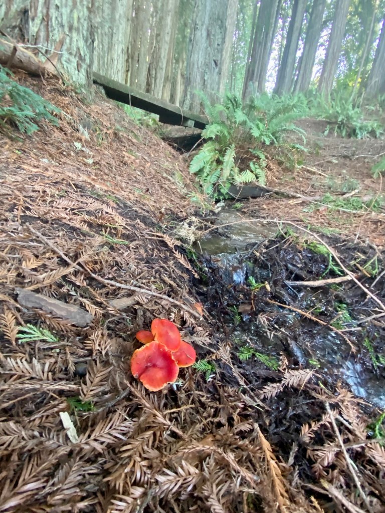 The 6 mile round trip hike begins in a beautiful redwood grove and ends at a bluff overlooking the ocean. There were amazing mushrooms along the trail!