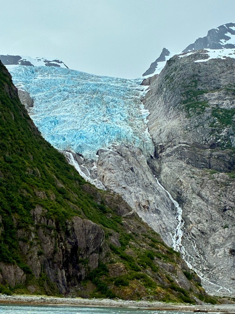 We visited two glaciers up close. We first visited Holgate Glacier. Holgate advances two inches per day from the Harding Ice Field. Next we visited the Aialik Glacier. It is a more “active” glacier in terms of calving. We saw several pieces of glacier break off that the tour guide estimated were as tall as a one story house.