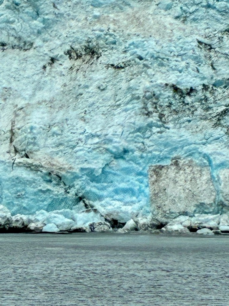 Both glaciers were beautiful and very impressive. The crew fished a chunk of glacier out of the water and brought it on board and chipped it into beautiful chunks and declared a special on margaritas over glacier ice. We fell for the marketing ploy. The glacier ice was gorgeous! They told us the ice was probably around 700 years old!