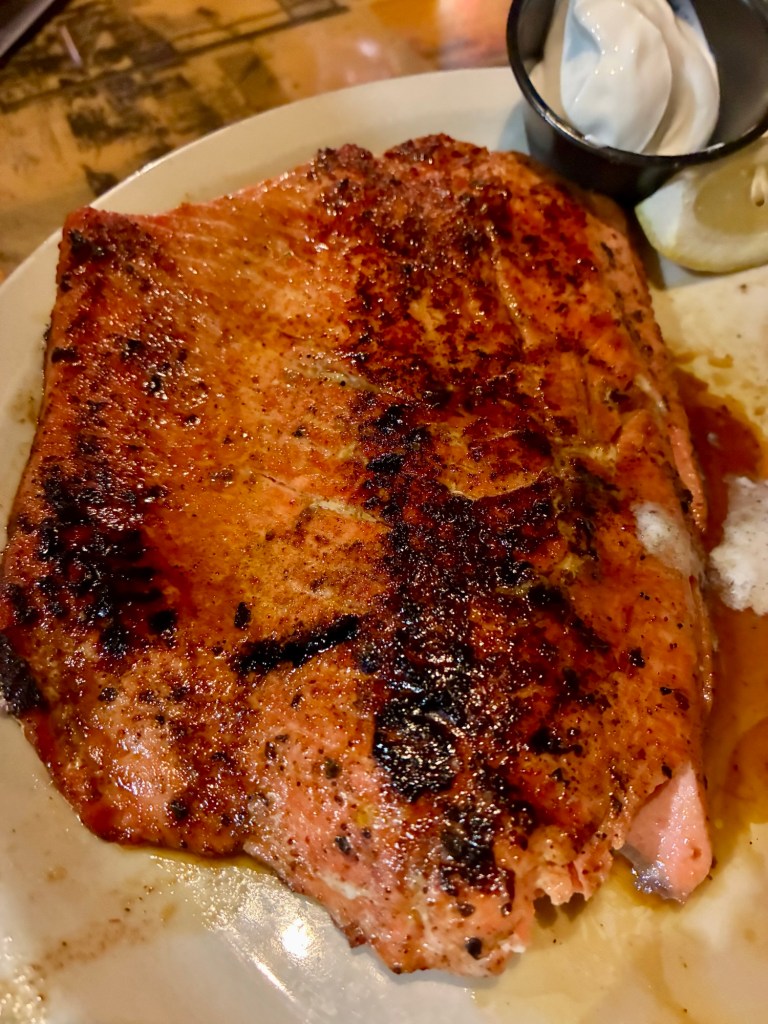 We called a cab after the boat ride to take us to Salmon Bake Restaurant for dinner. Salmon Bake claims to have cheap beer and lousy food. We didn’t have a beer but the food was NOT lousy. We had the salmon bake meal which is broiled sockeye salmon with a baked potato. The portion was huge and very flavorful!