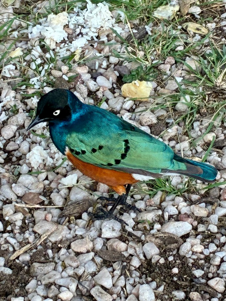 We saw beautiful birds like the Lilac Breasted Roller, Guinea Fowl, Ashy Starling, Egyptian Geese, Marabou, Ostriches, Grey Crowned Crane and more!